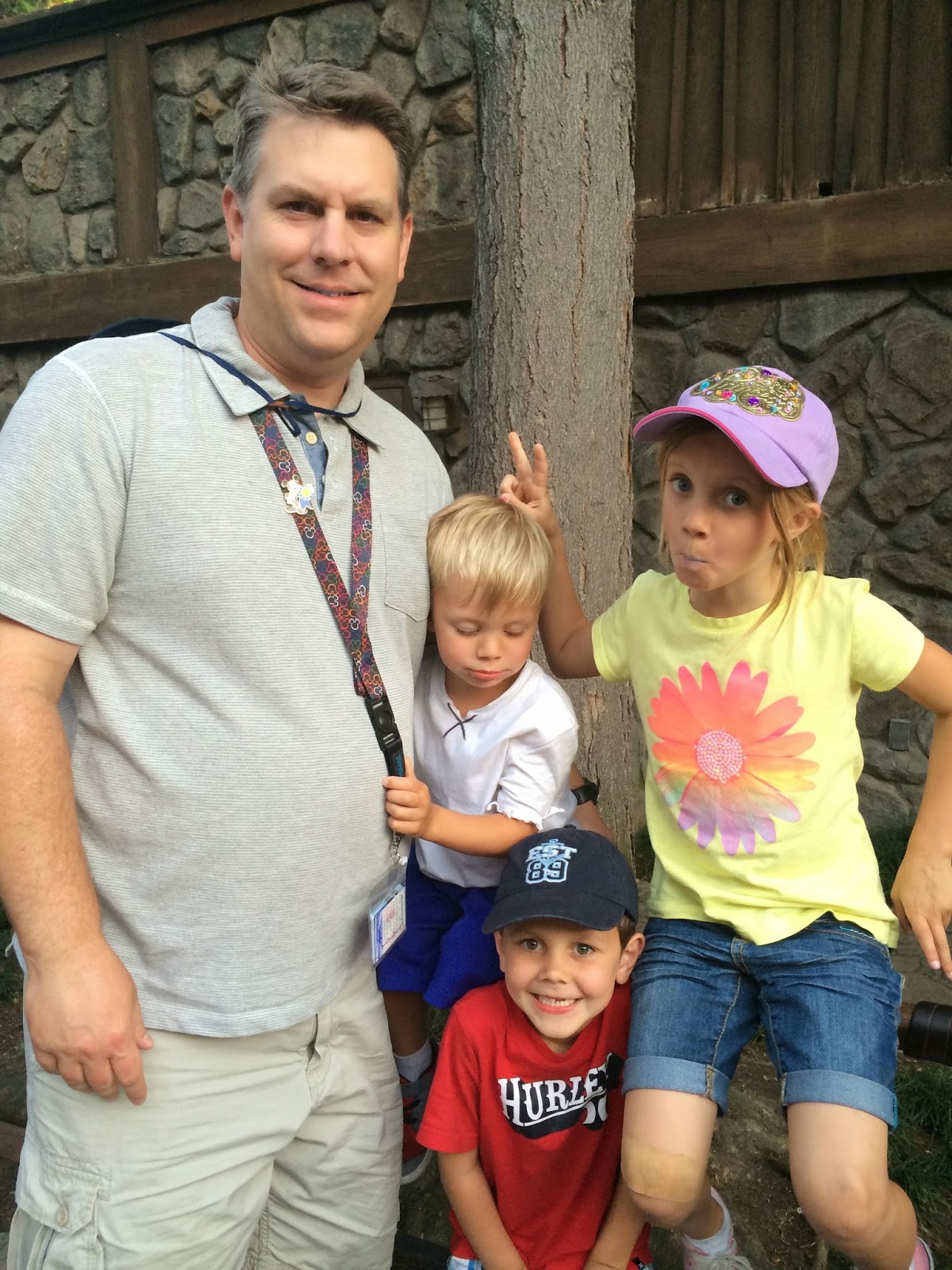 Getting ready to go on Splash Mountain. Yes, we are mean parents and told Makenna she didn't have any choice and had to go even if she didn't want to. We had left Carys with Grammy so we didn't have a reason why one of the parents had to stay off, so we made her go. And she was fine with it (even though she did complain a bit). I promised her I would put the backpack right in front of her and try to block her from the water and I kept my word. She stayed pretty dry, so we all won!